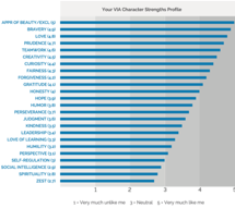 Discover what science says about your true self, and how you interact with others and operate in the world, with the Total 24 Character Strengths Report. This report is based on your free VIA Survey results and is the key to understanding your positive personality.