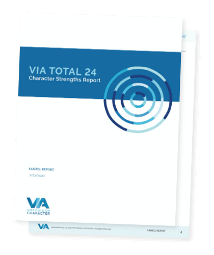 The Top 5 and Total 24 Reports are available in English, Chinese-Simplified, Chinese-Traditional, Danish, Finnish, French, German, Italian, Japanese, Brazilian-Portuguese, Portuguese-Portugal, Spanish and Swedish. Interested in providing an additional translation? We would welcome your support. Please contact VIA Customer Service at info@viacharacter.org.