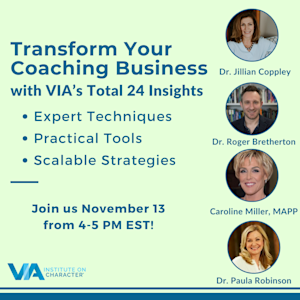 Join VIA for an exclusive webinar designed for coaches, consultants, and wellness professionals looking to elevate their practice and deliver meaningful, strengths-based growth for their clients.