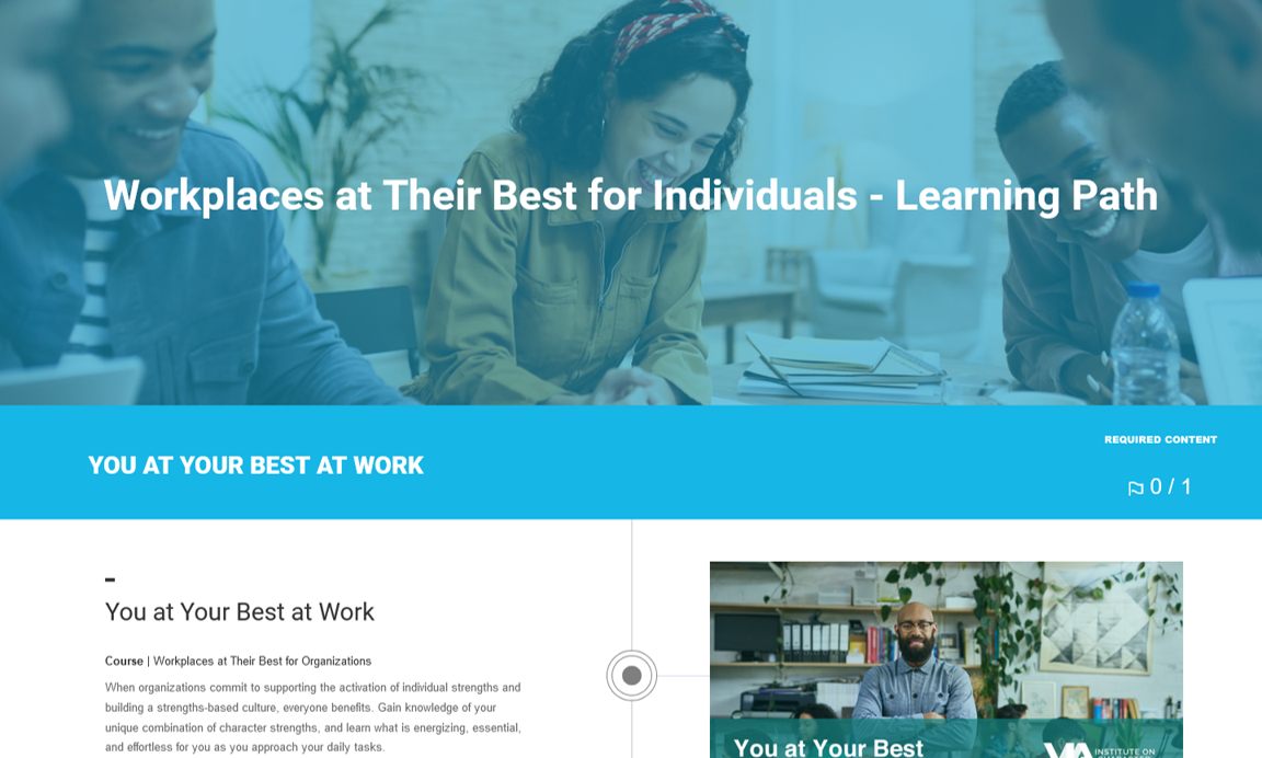Join the journey towards organizational excellence! With a focus on practicality, relevance, and proven science-backed methodologies, this learning path ensures that individuals are equipped with the knowledge and tools necessary to unlock the full potential of their workforce and become leaders in creating a positive workplace environment endorsed by the VIA Institute!