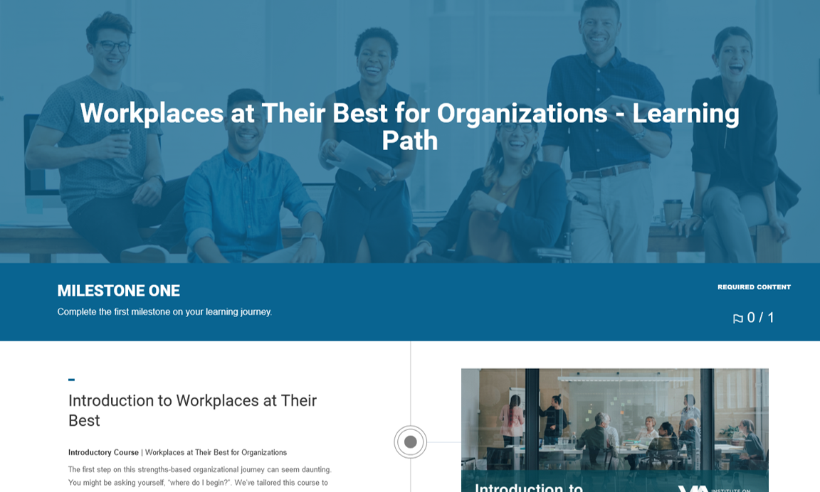 Welcome to the Workplaces at Their Best for Organizations - Learning Path, where workplaces embark on a transformative journey towards fostering a strengths-based culture.
