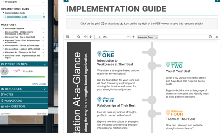 Dynamic Learning Path Includes six courses that cover individual, relational, and collective strengths activation designed to meet the needs of all learners. Organizations have the flexibility to progress through the courses in the order that best suits their needs.